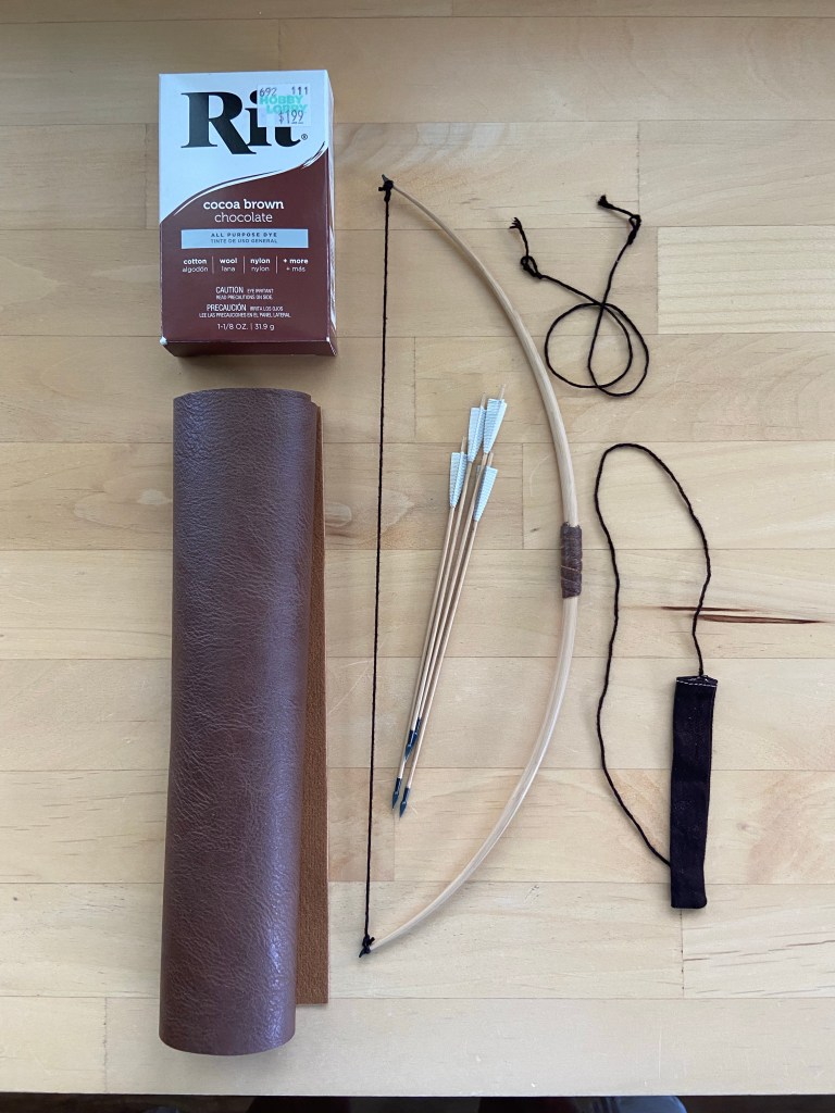 Oh, also—I did some slight modifications. I dyed the bowstrings and quiver a chocolate brown. And I made a leather grip.