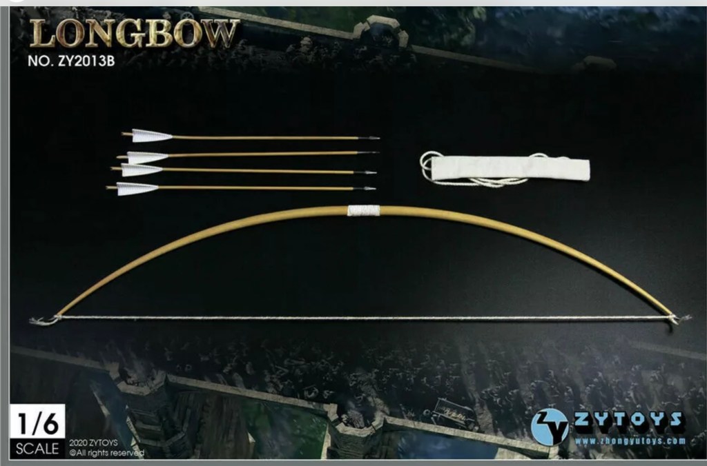 And here’s a longbow and arrows I picked up for him as well, which also underwent some slight modifications.