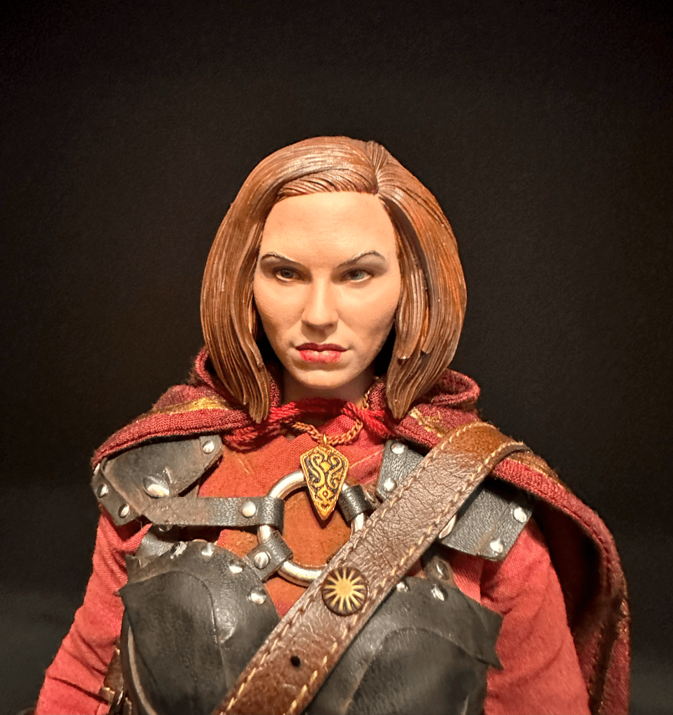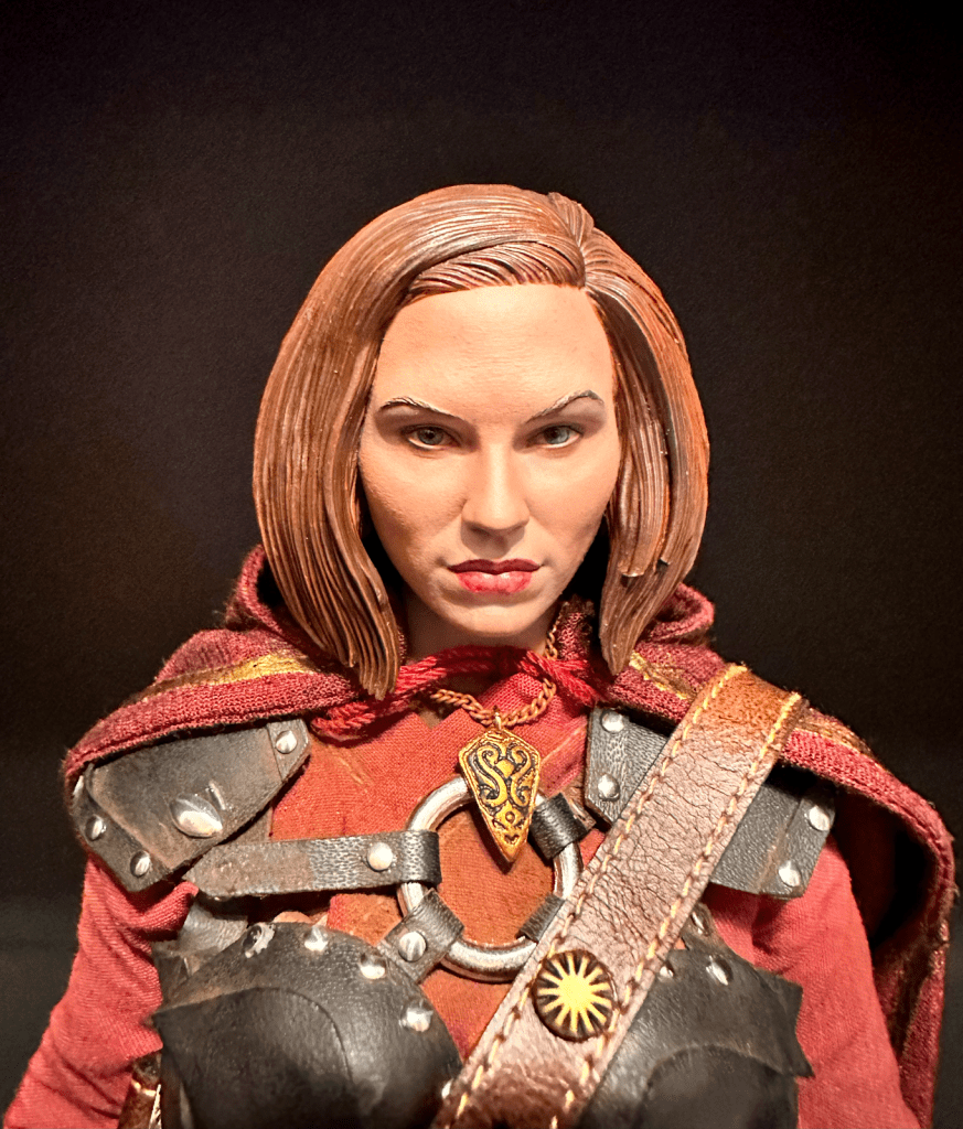 The only thing remaining for the gear is I had another white shirt for her lying around that I dyed purple to match the portrait. I still need to weather it, to dirty it up. And then go through the hassle of removing all the gear to try it on. But I think I’m probably going to prefer the purple shirt to the wine colored one. We’ll see.
